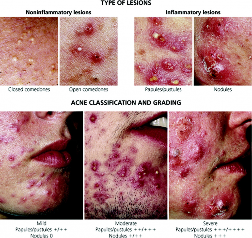 粉刺、膿包、黑頭或囊腫都是屬於痤瘡的表現型態,發生原因除了基因體質的問題之外,荷爾蒙的狀況、還有皮膚毛孔角質化的情形、油脂的分泌、高升糖指數食物、壓力及睡眠,還有痤瘡桿菌的多寡都會影響痤瘡的嚴重程度。